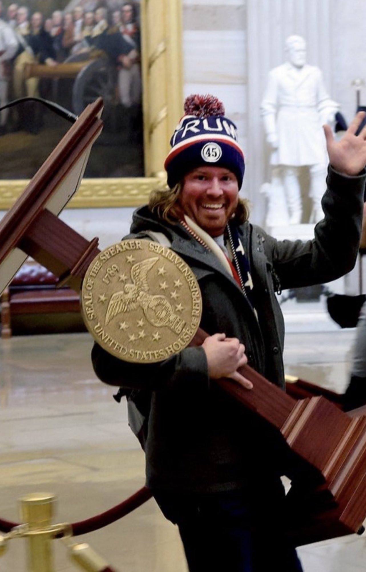 Above: A white Thug invades Capital Building, Steals Nancy Pelosi’s Podium, and lives to go to jail – we stay tuned to see if he is punished for this crime (while white)