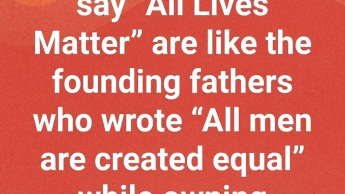 My cousin posted something recently and I’m going to share that with you. It’s about ‘black lives matter’ and the retort, from those racist whites – about how ‘all lives matter’ …