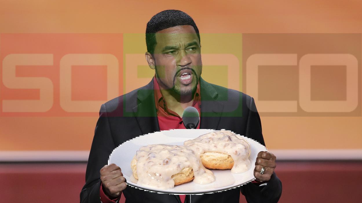 Receiving his award for super cooning for 2016-2018, Pastor Darrell Scott speaks at the Sell Out Awards; with a big ass plate of Gravy Biscuits!!