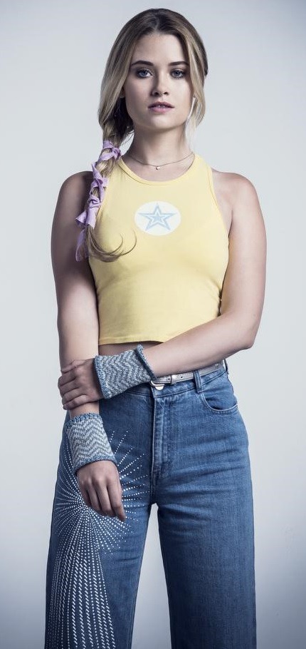 Both Captain Marvel, and Karolina Dean have so many things in common. (This isn’t about how all blondes look alike either; as that wouldn’t be true anyway. Much more is going on here than that.) Going beyond the fact that Brie Larson looks like Virginia Gardner, It’s, all connected isn’t it?? Even some of the ‘poses’ I grabbed for this article, have similarities. The ‘star’ on the chest, included…